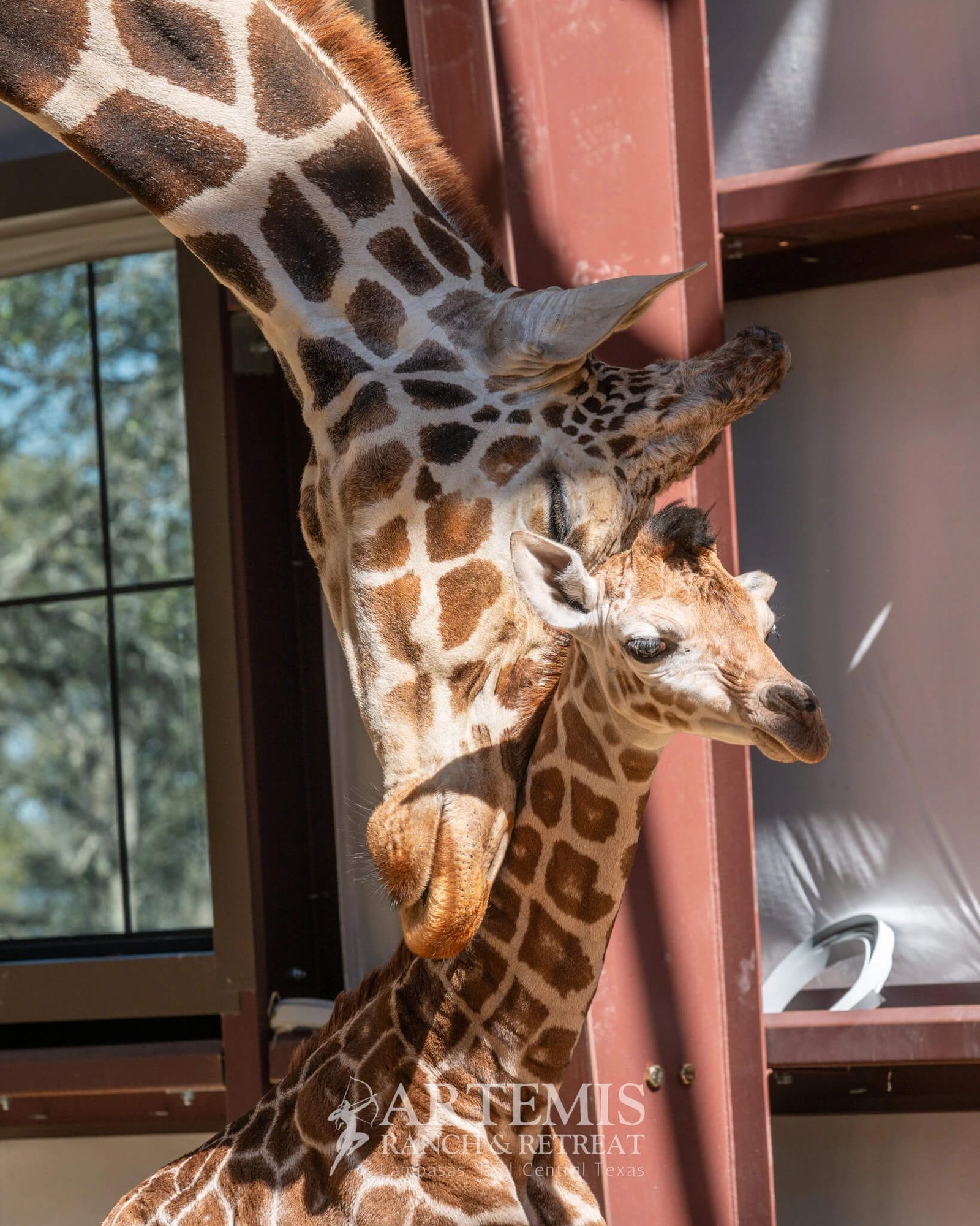 Saturday, February 15th marked a momentous occasion at Artemis Ranch as we welcomed the birth of our first giraffe calf, a healthy baby boy born to mother, Kenya at approximately 6pm. Both mom and baby are thriving, and we are thrilled to document and share the journey of our newest (wobbly and leggy!) little arrival.